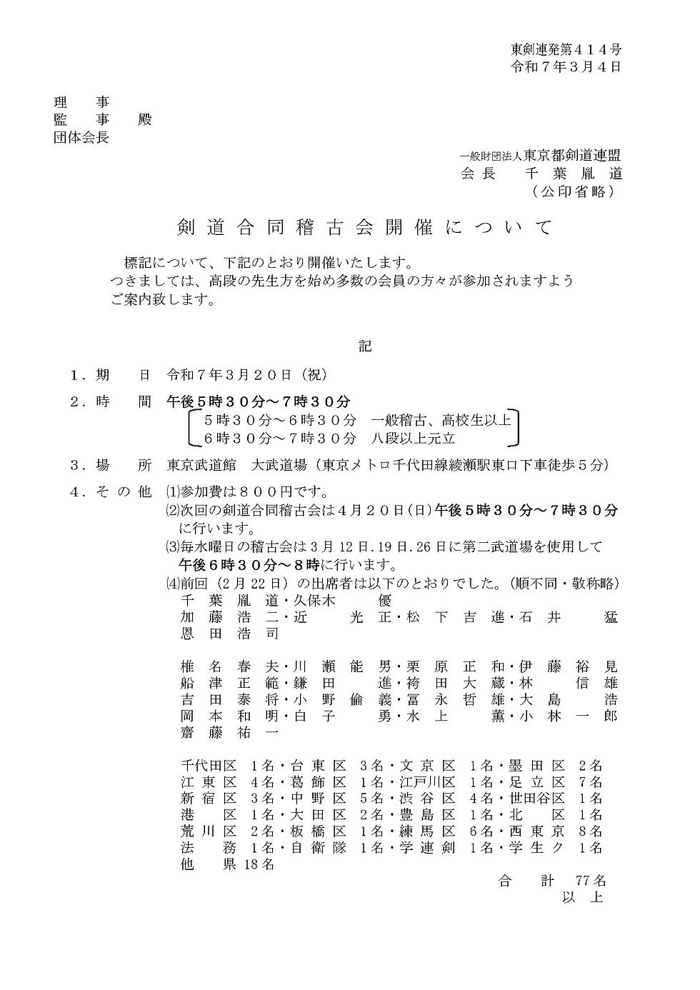 R73/20(祝) 東剣連合同稽古会